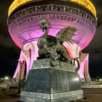 - По каналу Булак протянулась «летающая тарелка», от которой и начнётся наш маршрут. Это Казанский цирк, построенный в 1967 году и до сих пор остающийся крупнейшим в мире архитектурным НЛО! Здесь у нас будет первая остановка. Перед вами откроется потрясающий вид на знаменитую мечеть Кул Шариф и стены Казанского Кремля, сверкающие огнями в ночном небе